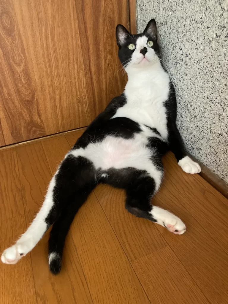 After a good meal, it’s officially chill mode for our cat — a peaceful moment filled with slow blinks, gentle purrs, and… the legendary itchy-belly wiggle.
