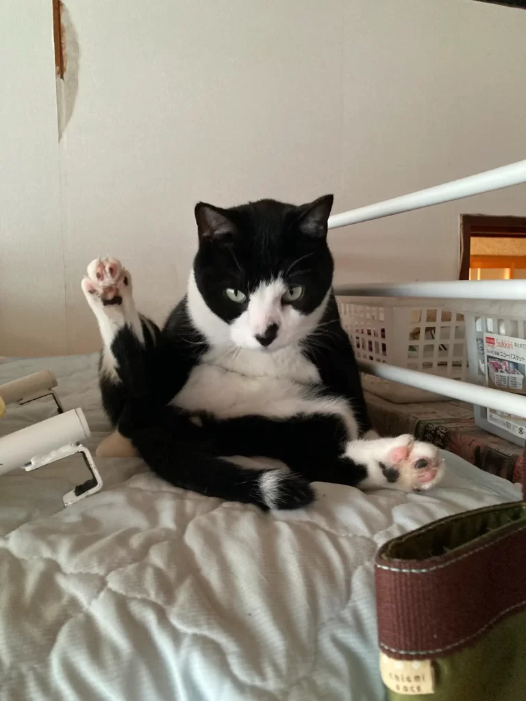 Not cute and elegant like a typical cat, but instead relaxing with the energy of a middle-aged man taking a break after a long day.